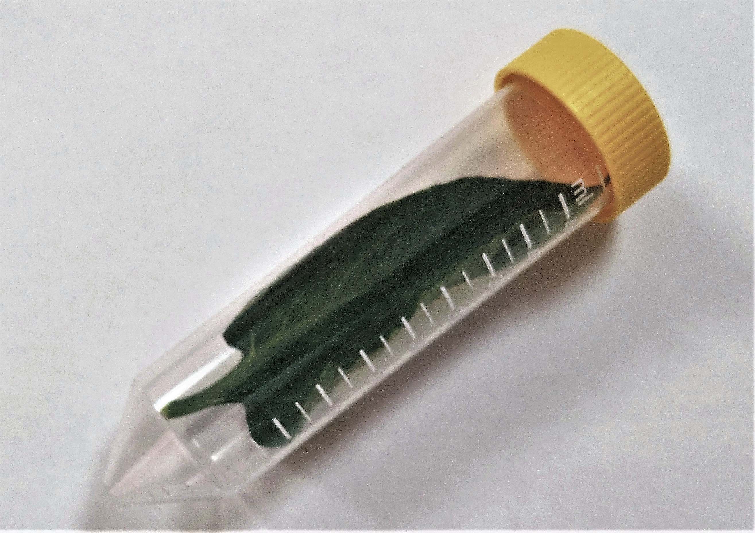 「検体保管用容器」にトマトの葉をそれぞれ1枚いれて、「検査依頼書」と一緒にクール宅急便(冷蔵タイプ)にてお送りください